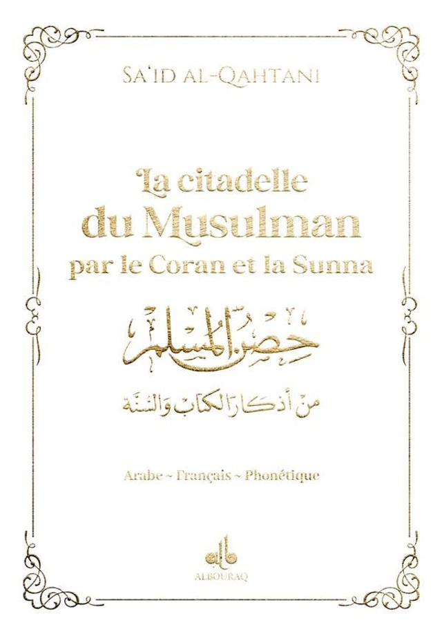 "La Citadelle du Musulman" (Hisn al-Muslim) est un recueil d'invocations (du‘â) et de rappels (adhkâr) authentiques, extraits du Coran et de la Sunna.Conçu pour accompagner le croyant dans sa vie quotidienne, cet ouvrage propose des formules à réciter dans diverses situations : au réveil, avant de dormir, en voyage, lors de l'entrée ou de la sortie de la maison, etc.Il sert de guide spirituel pratique, favorisant une connexion constante avec Allah.