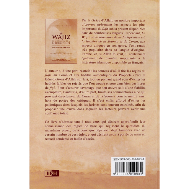 Le Wajiz ou le sommaire de la jurisprudence à la lumière de la sonna et du coran auteur Abdelmadjid Ibn Badaoui édition IIPH
